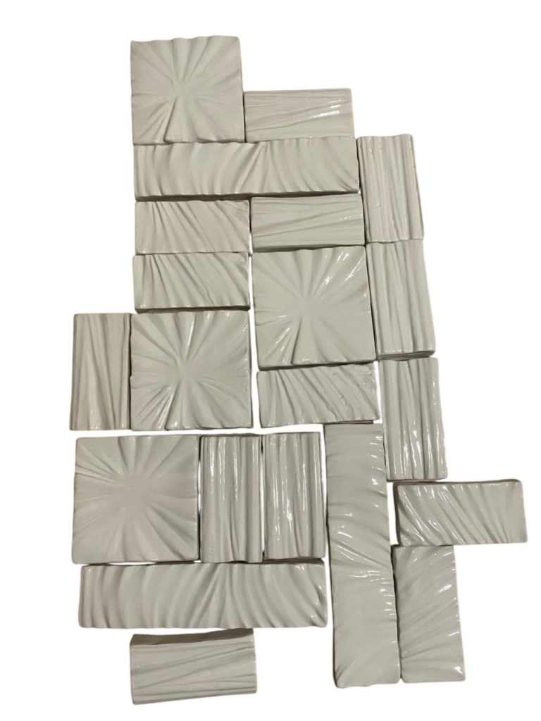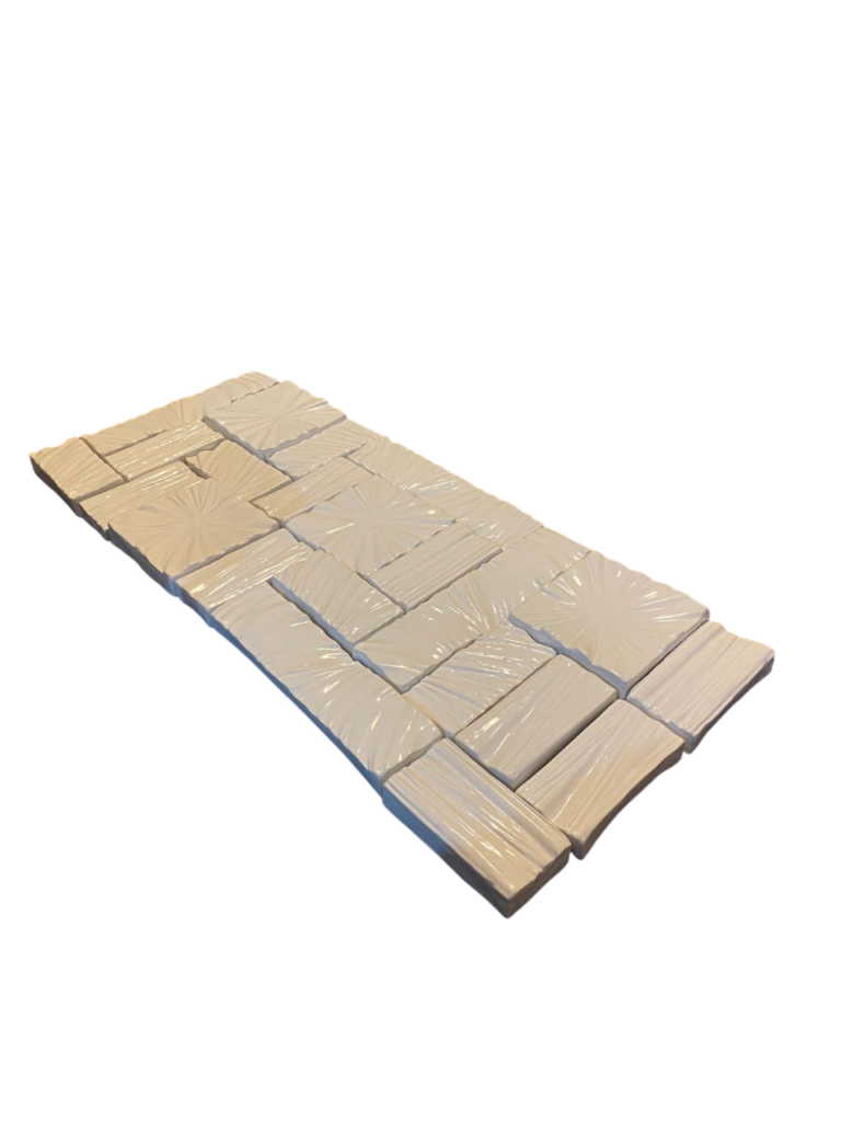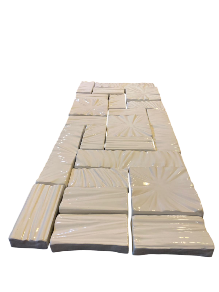 This project investigates the expressive potential of ceramics through the creation of an earthenware cladding finished with a transparent glaze, where texture becomes the focal point. The design embraces compositional freedom, allowing for multiple configurations and dynamic interactions between the individual pieces.